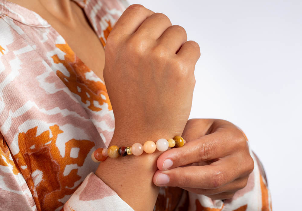 Sun stone, Carnelian, Garnet, MOP 12mm Armband
